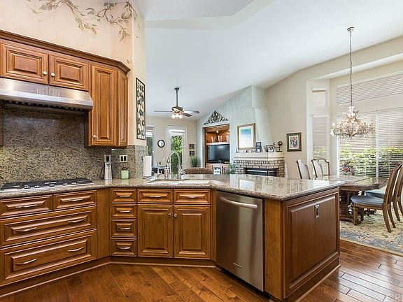 Gorgeous Copperhill North, Single Story Home Boasting 3 Bedrooms, 2 Bathrooms, 3 Car Garage & Finished Attic for Additional Storage!!! Upgrades in this Light & Bright Home include Beautiful Tile Flooring, Hunter Douglas Shades, Shutters, Recessed Lighting, Granite Counter tops, Built ins, Mirrored Wardrobe Doors, Brick Corner Fireplace, and more! The Open Plan Kitchen has been completely Upgraded and includes Stainless Steel Appliances. With a Breakfast Bar and Dining Area there is Plentiful space for Entertaining! Master Bathroom is Embellished with a Beautiful Custom Tile Shower Enclosure. The Backyard is Adorned with the Perfect mix of Landscape, Hardscape and Lawn area Creating a Relaxing Retreat under the Patio Cover.