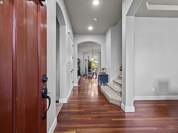 OPEN HOUSE Saturday November 22nd 11:00am-1:00pm. Fantastic Tualatin location near Ibach Park and Tualatin High School! This beautifully maintained home backs to private property, offering a serene view and excellent privacy with limited rear neighbors. The well designed floor plan features a grand open great room with built-ins, hardwood floors, 8’ interior doors and high ceilings, perfect for comfortable living and entertaining. The expansive primary suite welcomes you through double doors and includes a cozy fireplace, soaking tub, walk-in shower, generous walk-in closet, and a lovely view of the open space behind the home. All five bedrooms are conveniently located on the same level, providing both functionality and ease. The lower level offers incredible versatility with an additional separate bedroom, full bath, fireplace, and deck ideal for a home business, multi-generational living, game room or guest quarters. There’s also an additional 640 square feet (not included in total SF) of storage or gym space. Recent updates include a brand-new roof, fresh interior paint, newly painted cabinetry, and a fully refreshed deck. The swim spa will be retained by the seller. A truly special home in a desirable Tualatin neighborhood move in ready and full of potential!