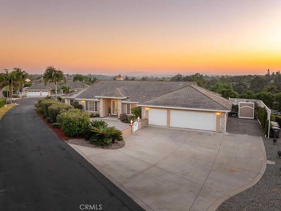 **Charming Single-Level Home in a Serene Setting**Welcome to your dream home! Nestled on a quiet street lined with custom homes, this stunning single-level residence boasts an inviting floor plan perfect for both relaxation and entertainment. From the front entry you look through the family room oversized sliding glass doors out to the inviting backyard and beyond to the incredible view. Enjoy the spacious Primary bedroom, complete with plantation shutters and sliding glass doors that lead to the outdoor oasis. Equipped with an updated variable-speed HVAC system with a heat pump and backup propane, you'll experience year-round comfort. The home also features a hybrid water heater with recirculation for on-demand hot water. Benefit from the owned 7.5k solar system, which enhances energy efficiency and reduces utility costs. This property is an RVer's delight, offering enclosed RV storage with full hookups, plus an additional RV parking space also equipped with full hookups. Stylish interiors showcase recent full interior paint and premium Patina Design hybrid flooring throughout, creating a fresh and modern aesthetic. Smart home features, including a Schlage smart front door lock and wiring for an alarm system, provide peace of mind. Practicality is key, with garage storage cabinets and attic storage access with a drop-down ladder. The family room is wired with surround sound speakers, and the rear patio includes propane service for BBQs. A fountain with a timer adds a tranquil touch to your outdoor space. The hands-free kitchen sink and RO water at the kitchen sink make daily tasks a breeze. A washer and dryer are available upon request. This meticulously maintained home combines functionality with modern amenities, making it an ideal choice for those who appreciate convenience and comfort. Don't miss your chance to make this beautiful property your own! Call to schedule a viewing today!
