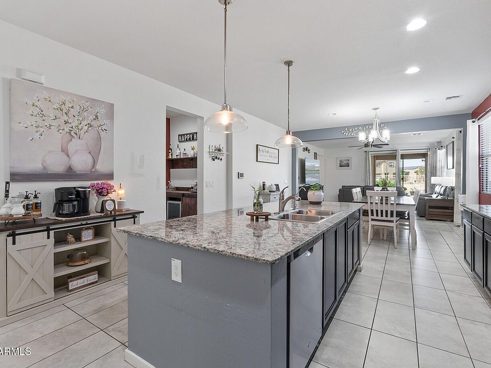 Stylish comfort meets desert charm in this 3-bedroom, 2-bathroom, Den which could be 4th bedroom PLUS a Flex room the home is nestled in the desirable Watson Estates. This spacious open floor plan is 2,005 sq ft ranch-style residence offers crown molding, modern comfort & thoughtful design. The Gourmet Kitchen: Designed for both functionality & style, the kitchen boasts a large island with pendant lighting, stainless steel appliances, granite countertops, walk-in pantry, RO water system at kitchen sink. Private Split Primary Suite generously sized bedroom includes an ensuite bathroom, double vanity, large shower & walk-in Closet. The covered Patio leads to a rocked backyard with turf and the home backs up to open green space & walking trails, mountain views & 2 yr Home Warranty Included. Many extras include upgraded hardware, lights, plumbing fixtures, water softener, leased solar panels to help keep energy costs down. Great location, near parks, trails, schools, shopping, dining and freeway access. 24HR notice to show any time after 2 pm please. Due to work schedule.