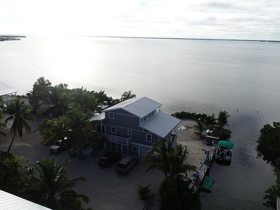 Oasis on the open water with gorgeous views, located on almost a 1/2 acre of land. Corner lot property with a private boat ramp, concrete dock with davits, and a walk in beach area. Two story 3 bedroom 2 bathroom home with an upstairs master suite. Large walk in master shower, hot tub, cistern, drive- thru garage, and spacious decks. Plenty of storage, off street parking, and room for a pool and RV. This home has everything you need to enjoy the Florida Keys lifestyle.