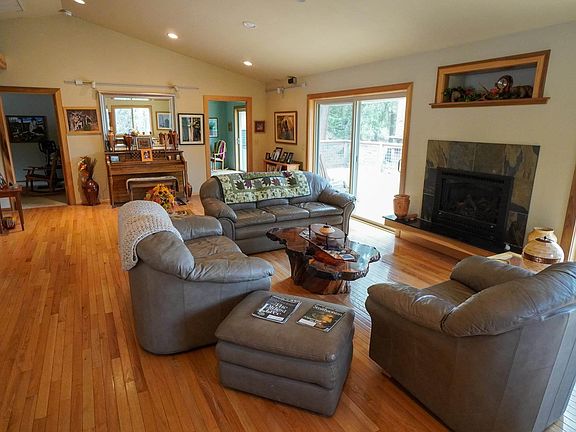 As you arrive you will get a sense of the privacy this property provides. The front porch and breezeway to the garage provide an excellent place to relax and read a book. When you come in the front door you will be drawn to the views large doors provide. This 2 bed 2 bath home features a spacious kitchen with custom Popular cabinets and granite countertops. The great room has hardwood floors and a fireplace. Large master bedroom and the master bath features a sunken tub and separate shower. The large deck is a great place to catch sunset views every night. The laundry room/office space is spacious as well. There is a large 2 car garage with workshop. Come see this home today.