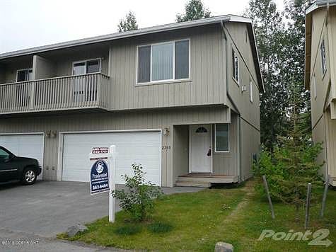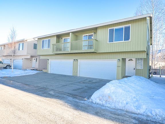 Town house style condo that offers an open floor plan living with a deck access off of the kitchen/dining area. Stay warm during the cold Alaskan winters with the gas fireplace. Large MBR suite offers a big walk-in closet and bathroom. Down stairs, there are 2 bedrooms separated by a full bathroom to give the complete Jack and Jill bathroom setup. The 2 car garage will keep your vehicles warm.