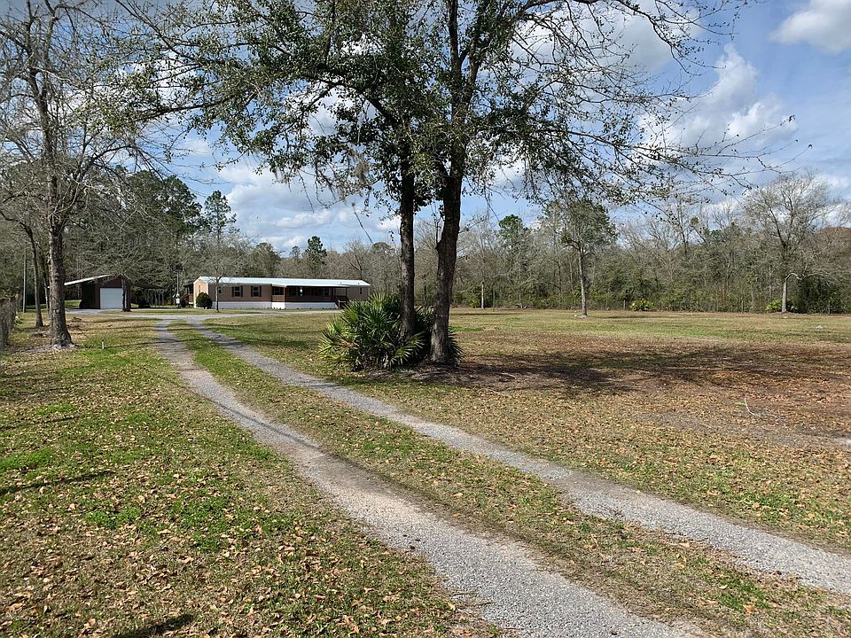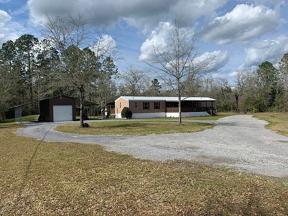 This 3 bedroom 2 bath mobile home sits on the back of 2.16 acres of cleared land - completely fenced & secluded. Outside has several upgrades- a new metal roof, large covered front and back porches, a metal barn with rolling door, a concrete slab and lean-tos on each side and an additional storage building. Inside offers plenty of cabinet storage in the kitchen., a large master suite with a walk in closet. It's a great setup for entertaining or simply enjoying peaceful country living. Located just 45 minutes from Gainesville or Jacksonville.