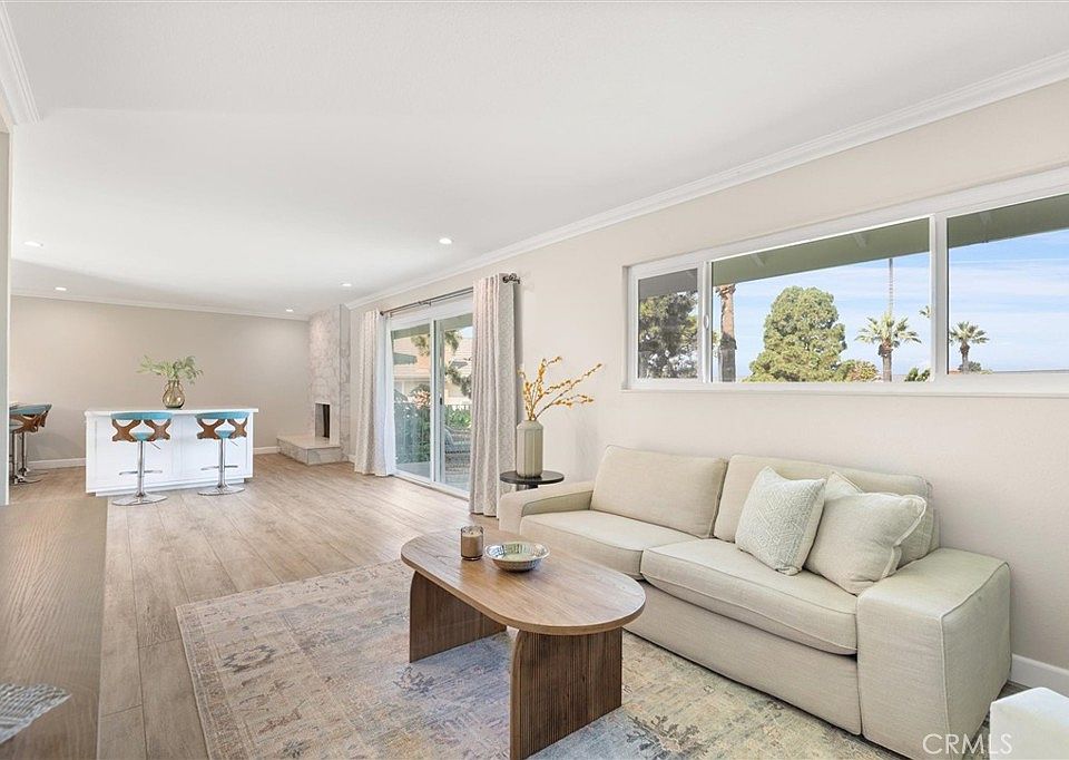 Welcome to this gorgeous New Horizons condo featuring exclusive golf course views. Located in a peaceful park-like setting with landscaped grounds this extra-large 1 bedroom plus den, 2 bathroom home is ready for a new owner. Wide-plank flooring flows throughout this open floorplan. The spacious living room features a beautiful tile fireplace, a newly added extra-large bar height island, double pane windows, and a slider to your first private balcony. The unit also features a flex space off of the living room which can easily be converted into a second bedroom, office, or kept just as is for a spacious living area. Both bathrooms have been remodeled with the guest bathroom shower being remodeled in 2025. Unwind and relax in the spacious primary suite featuring lovely views, a slider to your second private balcony, and a sizable walk-in closet with built-in cabinets. Located within the New Horizons 55+ community come enjoy resort style living with two pools, 9-hole golf course, tennis courts, exercise rooms, billiard room, card room, meeting & conference rooms, ceramics and woodworking studios, picnic & barbecue areas, and so much more!