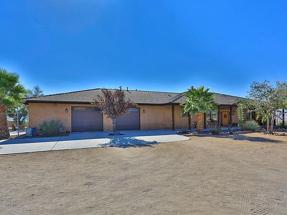 One of a kind Apple Valley Charmer! This 5 bedroom 3 full bath beauty, is full of privacy and unique style. Upon arrival at the property, you will be taken aback by the solid wood doors throughout out the home. This spit floor plan offers TWO family rooms. As you enter the FIRST family room with an amazing rock wall and wood burning stove you will enjoy the view that is to die for. The kitchen is an entertainers dream with granite tile counter tops, custom wood cabinets and a huge island with a prep sink. Just off the kitchen is the master bedroom of your dreams. It includes a huge walk-in closet, large walk-in shower with dual shower heads, deep soaking tub and his and her sinks. On the other side of the spilt floor plan you have a fully upgraded guest bathroom, second family room, 4 bedrooms including a SECOND MASTER. Get swept away by the sunset and city views while relaxing by the pool, or spend your time admiring the interior of this Woodlyn style home. This property is also zoned for horses, corral is negotiable. This property contains a 2500 gal well with a 40 gal holding tank. Find your own desert oasis in this fully custom built home.