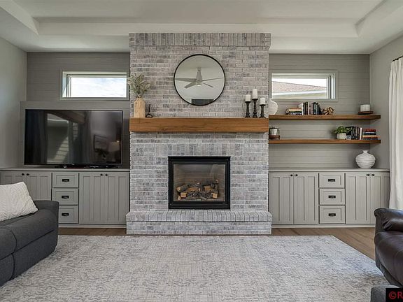 - Description: Hardwood floors, tray ceiling, gas fireplace, and built-in cabinets & bookcases