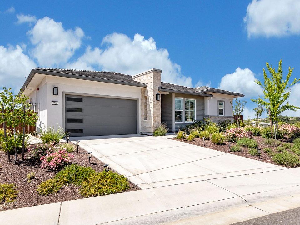 Newly constructed in 2021 this single level home rests on a premium homesite with breathtaking WEST VIEWS of down Sacramento, the Sacramento valley and beyond. Expansive .24-ACRE corner lot promotes privacy and space. Completely landscaped and hardscaped. Newer construction still under builder warranty. Equipped with modern conveniences and energy-efficient features that include SOLAR. Open-concept floor plan designed for modern comfort & style. The gourmet kitchen features built-in Monogram professional appliances and boasts a waterfall quartz surround island and deep bottom sink. Hidden walk-in pantry tucked into designer cabinetry with ample storage. From the dining area, access the outdoors and enter into the covered outdoor California room where you are greeted by a built-in fireplace. Hardscape includes a covered patio, landscape lighting, garden beds and plenty of room for future additions such as a pool, additional hardscaping, RV and off-street parking. Surreal views, spectacular sunsets and an abundance of stargazing are included with this elevated lot. Walking distance to endless Serrano trails, new shopping and beautiful parks nearby. Residents of Hawkview enjoy access to the areas top rated schools including OakRidge High School.