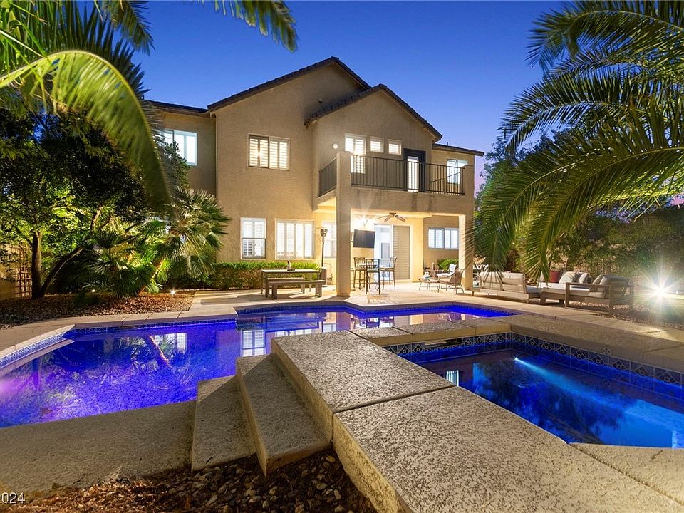 Welcome to your dream home!This stunning 5-bedroom residence on a large corner lot in Anthem perfectly blends comfort & luxury.Enjoy a spacious office/den with built-in shelves, separate living & family rooms, dining room, and a recently renovated expansive kitchen—ideal for relaxation & entertaining.Step into your resort-style private backyard, featuring a sparkling mosaic-tiled pool, rejuvenating spa, putting green & a covered patio surrounded by mature landscaping—perfect for gatherings or quiet evenings.Inside, thoughtful details like ceiling fans & stylish shutters enhance the space, along with a downstairs bedroom & 3/4 bath for guests.Upstairs, the spacious primary bedroom is a true retreat, with a cozy sitting area, fireplace & access to a balcony overlooking the breathtaking backyard.The suite includes 2 generous walk-in closets & 2 luxurious en-suite bathrooms.With brand new AC units, this beautiful property offers exceptional comfort.Don’t miss the chance to make it yours!