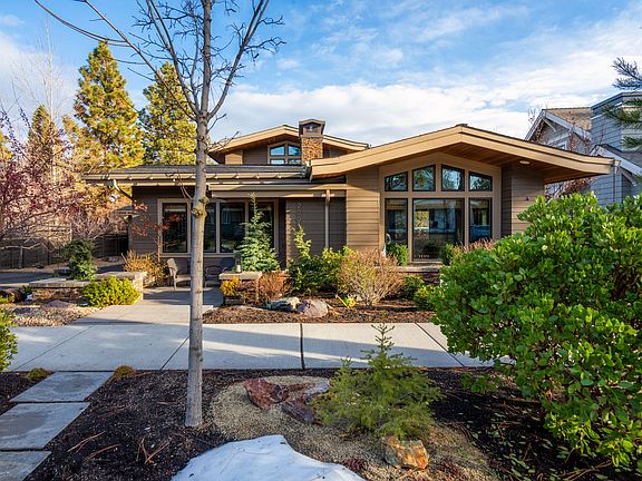 Welcome to this stunning Prairie-style home with a Modern flair, open concept living space, providing a harmonious balance of comfort and style with a double-sided fireplace between the kitchen and family room , floating staircase featuring a custom railing designed by Bend artist Andrew Wachs. Attention to detail extends throughout the home, with custom-built cabinets and storage solutions integrated into the living spaces. The exterior of the property is a true oasis with easy-care landscaping and carefully designed hardscape elements, a water feature, and a cozy fire pit surrounded by multiple lounging and dining areas. Enjoy the outdoors from the backyard patios or upper deck, offering panoramic views that add to the charm of this residence. With an oversized 2-car garage plus 160 sqft of loft storage & built-in garage cabinetry. Woodworkers, hobbyists, gardeners, and crafters will appreciate the heated 250 square foot workshop with 220v wiring. Walking distance to lots of fun.