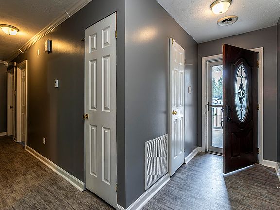 Welcome Home. 5 bedroom/ 2 bath home is perfect for a larger family. Lots of kitchen cabinets and counter space. Move-in ready with fresh paint and flooring. HVAC and roof were both updated in 2023. Above ground pool in side yard and storage building in back yard both convey. Home is complete with a front porch and back deck on a large lot in a cul-de-sac.