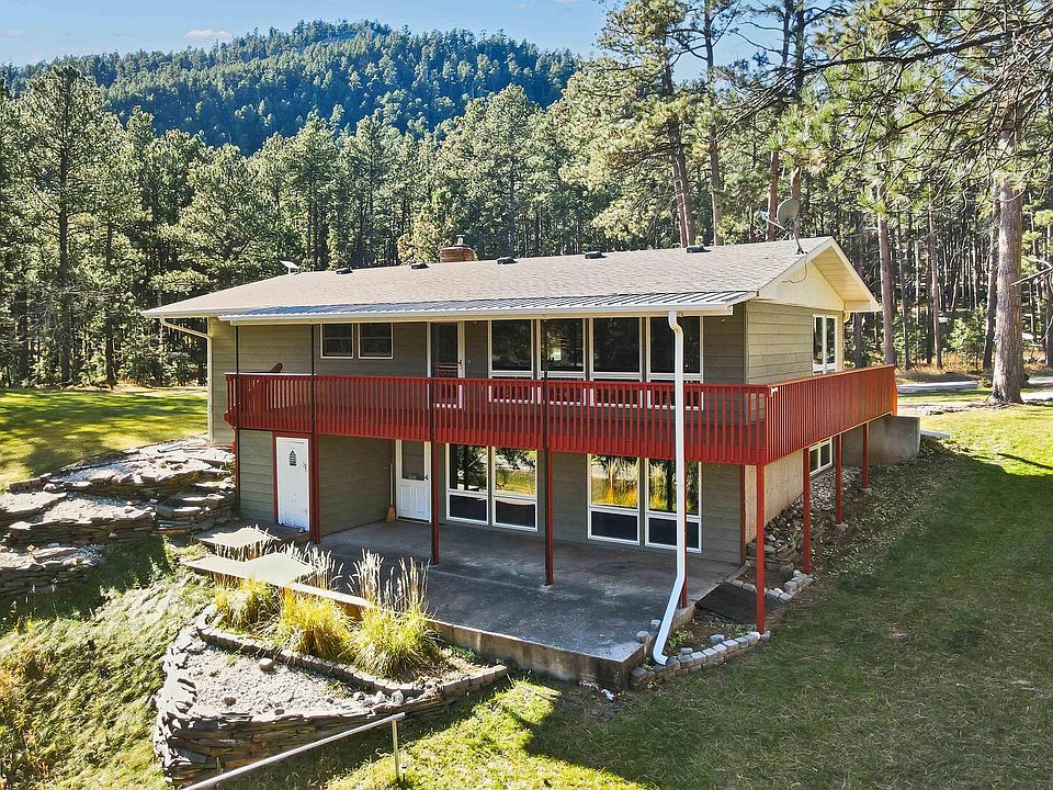 Creek Side Retreat to Call Home! 2.35 Acres close to Forest Service. Nestled just 9 miles west of Rapid City, this inviting 4 BR, 2 Ba, 2 Car Garage offers privacy, nature and spacious living! Fifth room that could convert to a 5th BR (ntc), and could easily be an office/craft/hobby area. This 2400 SqFt home, (county described as a split foyer), feels like an open raised ranch style having walkouts on both levels that invite the outdoors in! Large windows throughout with views of mature trees and the creek. Pellet stove in lower level. Partial wrap around deck and back covered patio that was freshly stained(Oct 25). Detached oversized 34x24 garage with workbench, 12x20 tool shed, and a garden shed. Roof & gutters brand new in November 2025. Newer since 2018: water heater, water softener, septic tank, pump, drain field, & some carpeting. Appliances stay, including washer & dryer. Water & Irrigation is a Private well and sprinkler system. Dedicated RV parking area with electrical hook-ups. Covenants allow for a possible guest house. Unique bridge over the flowing creek- could be a fisherman's dream! Level areas on either side of the home. Flat and open meadow on the other side of the creek for recreation or other possibilities. Forest Service land directly across the road—over 24,500 acres of Black Hills National Forest wilderness connecting to Lake Pactola! This Nature Lover’s Paradise: — over 240 yards of creek frontage that is perfect for fishing, soaking in the scenery, or meditating to the relaxing sounds of nature. Endless hiking, biking and outdoor activities in the nearby Forest. Centrally located in the Hills with convenient access to Hwy 44 & Hwy 385 to travel to your other favorite places in the Hills. Listed by Stacie Montgomery, South Dakota Properties, 605 391-1854.