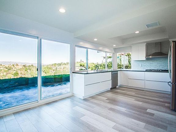 Welcome home to this Absolutely stunning view property, tastefully remodeled from top to bottom, brand new kitchen cabinets, appliances, windows, sliding door, and more. This amazing Calabasas home is located in a gorgeous quiet cul-de-sac street. Walk into the double door entry into a large living room with a beautiful fireplace and wooden shutters. The dining room looks over beautiful views to enjoy meals while overlooking picturesque scenery. The step down family room leads to an oversized, immaculate two car garage. This home is equipped with a luxurious master bedroom with balconies, a walk in closet, and a gorgeously remodeled bathroom with double vanities. Come make this amazing property home sweet home for you and your family. Words cannot do justice to the stunning views this property boasts. The location is amazing, and the home has a modern and new feel to it thanks to its recent renovations. Enjoy living in Calabasas and it's best! Calabasas view home, gardening paid by landlord