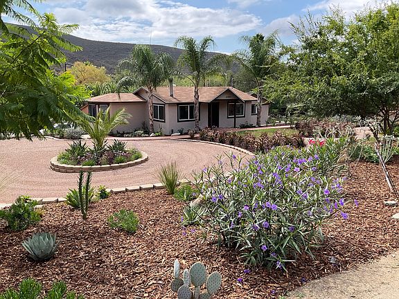 Approximately 2,300 sq ft of living space with 3bd. 3 full baths on a beautifully landscaped 1/2 acre lot in a peaceful rural setting. This is a spacious single story home with everything you could want. All rooms are draped with black out curtains throughout and all bedroom closets have mirrored doors with built in's. This home has been redone from electrical, plumbing, ALL NEW Appliances including propane stove, large built in microwave ,large side by side refrigerator with filtered water and ice dispenser in door , dishwasher, washer and dryer also there's a wood burning pot belly stove in living room and central air conditioning and heating which can be switched from propane to electric, master bath with rain shower, wall shower and shower wand, large designer kitchen with pantry, a mobile island with cutting board top, and a lot of cabinet space. This is an Incredible Home with nicely laid out floor plan. Laminate wood flooring in all rooms except bathrooms, laundry, dining area and kitchen. All rooms are nice size throughout including a pool table Size Game room/playroom with lots of natural light. There is a Living room and separate family room. Nice side yard patio for bbq. Circular driveway and pull out area for extra parking as well as parking space around back. Great little area behind the house to have your own little raised garden. Freshly painted inside and out, and professionally landscaped yard. What else could you ask for! Near shopping, medical clinics, restaurants and Barona Casino within 10 miles . Quick way to Lake Jennings, enjoy having a lunch at the Best bakery around Dudley's about 20 minutes north and the Historical Julian in about 45 minutes or less. You can be at the airport in San Diego within 45-60 minutes.