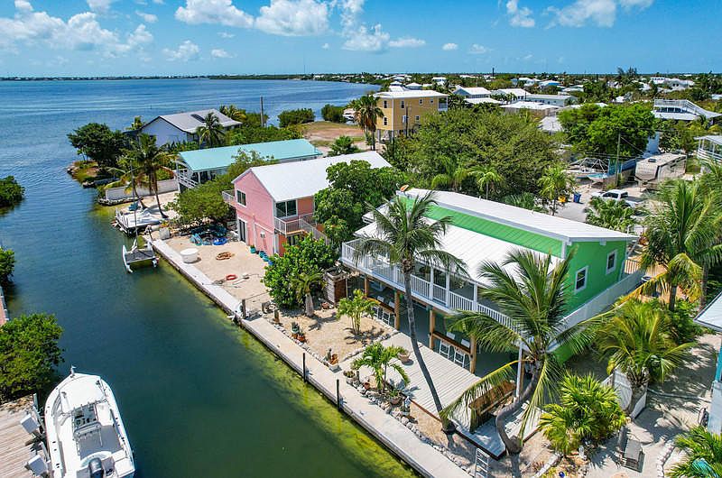 ADORABLE KEYSIE HOME WITH GORGEOUS OPEN WATER VIEWS AND STUNNING SUNSETS! This renovated 2 bedroom home with vaulted exposed beam ceilings and open floor plan has new, stainless appliances, JENNAIRE cooktop and range dual electric and gas, BOSCH dishwasher, Corian Countertops, impact glass door sliders and windows, metal roof, new HVAC, gutters! House freshly painted interior and exterior, outdoor shower and bath, 2 sets of washers and dryers. 60' concrete seawall with deep canal. Huge Downstairs enclosed space and FEMA inspected and passed. Wrap around upper level porch with incredible views, lower level has fenced in back area with bar and great for entertaining canal side! Large lot with plenty of parking for RV, cars, trailer. Gorgeous foliage and professionally landscaped. A must see
