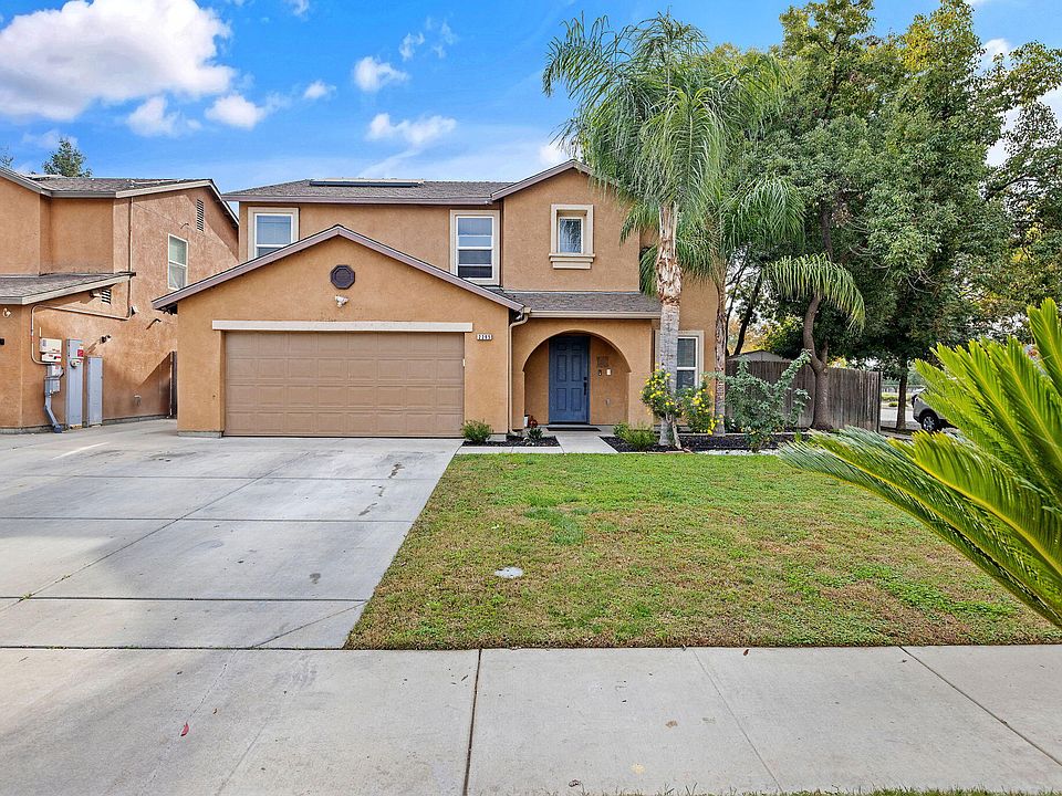 This spacious 4-bedroom home featuring owned solar and over 2,100 sq. ft. of comfortable living! This corner-lot property offers two inviting living spaces downstairs, an open kitchen and dining area, and a half bath and laundry room. Upstairs, you'll find four spacious bedrooms including a primary suite with its own bathroom. Enjoy the outdoors under a full-length covered patio overlooking a private backyard with fruit trees. A fantastic value for the size and amenities. Schedule a showing today!