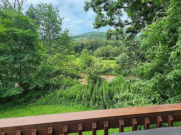 Charming River Front house with barn on approximately 2 Ac. Mountain and River View. House 2,912 SQ. Ft & 2 stories Barn 3,500 sq ft New roof, new central oil heating. WIFI. Washer, Drier. New Hot tub. Wifi thermostat. 3 Bedrooms, 2 Bath, Living Room with wood stove, Dining Room, Utility Room, Sunroom with Fire Place and pool table. Extra hot tub room. Huge Covered Porch with River View. Big Balcony. 10+ Parking's spaces. 2 stories Barn 3,500 sq ft ( block walls, metal roof, 2 metal drive-in double doors). 2nd floor has a cathedral ceiling, unfinished wooden floor. Ready for Airbnb ready. Furniture included in a sale. Great fishing and hunting.
