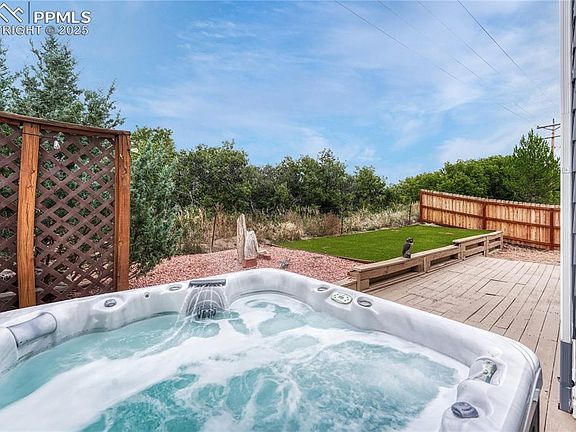 No HOA, Great Mountain Views, Private corner lot that backs to an open space area at the top of the hill at the end of the street, oversized heated garage. Main level has an open kitchen/living room area, breakfast nook area, gas fireplace, office/bedroom, formal dining room, upgraded kitchen with LVP flooring, slab granite countertops, tasteful back splash, pendant lighting, gas stove, & walks out to a no maintenance backyard-Deck, Hot Tub, artificial turf, dog run area, fully fenced, and an open space area. Upper level has 3 bedrooms & 2 full bathrooms. Primary bedroom is spacious with a bonus room area for spectacular mountain views, vaulted ceiling, and a walk-in closet. 5 Piece bathroom has been fully updated with stone floors, countertop, lighting, shower surround, and a deep soaking tub with plant ledges. Finished basement has a 2nd kitchen, 2nd living area, 2 bedrooms, and a 3/4 bathroom with a tile surround shower. House has large picture windows throughout for lots of natural lighting and spectacular views. All appliances at the property are included. Located minutes from downtown Castle Rock, stores, restaurants, schools, parks, hospital, CR Rec Center, The MAC, Outlets at CR, The Promenade.