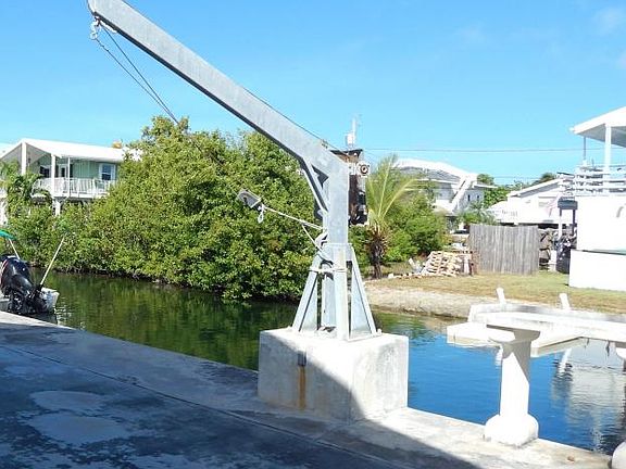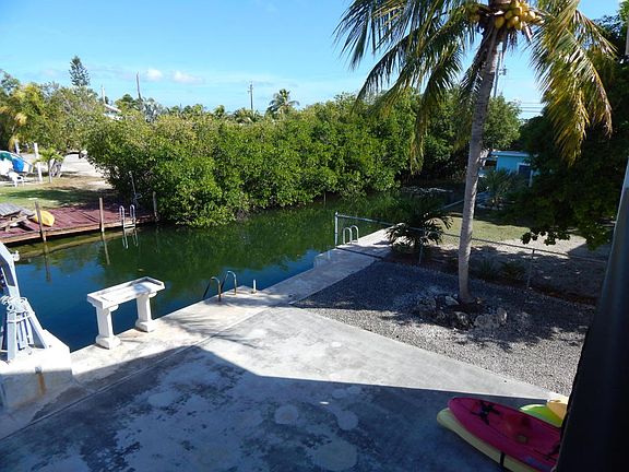 Super cute home, solid CBS with newer metal roof in great Cudjoe location-3rd home in from open water with some nice open water views of Cudjoe Bay. 2 bedrooms, 1 bath, nice living room & dining, large patio overlooking canal. Concrete dock w/davits & concrete fish table. Rolladen & accordian shutters. Clean lot w/plenty of parking under house & great storage room w/access to dock through slider.