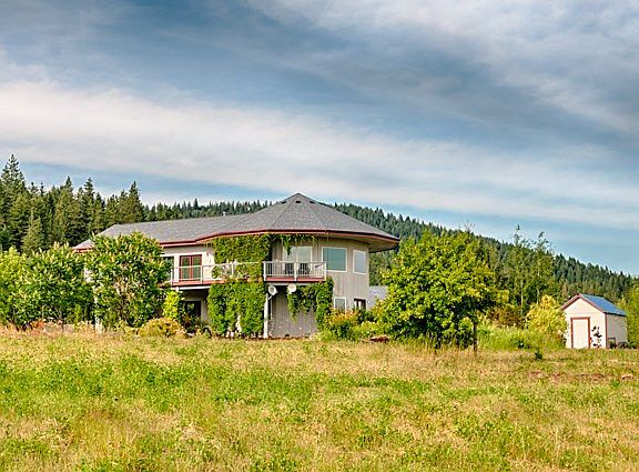 Custom designed home with wonderful views and open floor plan. In-floor radiant heat. Wrap around porch and windows allow you to enjoy the views. Newly repainted interior and exceptionally clean. Close to Twin Lakes Golf Course and Lake. Just less than 5 acres. Master is on the upper level with Kitchen and Living Room. Large walk-in Pantry. 2nd and 3rd bedrooms and an office on the main level. Floor are linoleum and aggregate.