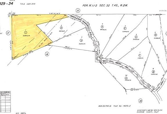 TEN + (10.66) ACRE VACANT LOT in "THE RANCH at SKY MESA", a Private, Gated Community in SOUTHWESTERN RIVERSIDE COUNTY. LOT 1, TRACT 2. Pad plotted on site map. Fire hydrant letter & corners reconfirmed. Frontage of 110'. Wraps behind the adjacent parcel. 1000' +- on the N. side & 1500'+- S. side. 845+- back line. Propane & septic tank area. District water. Utilities in paved street. 2800 sq ft homes w/ 3 car garages. No mobile homes. Four horses allowed. 500 acre community w/77 lots. High-tech security recording camera system @ entrance gates. BUZZ in guests. Private, yet close to services & access to LA, mountains, deserts & beaches. Close to I-215, I-15,Ramona Expressway, Hwy 74, & 79 & 10 & 60 freeways. 1 of 13 REO lots - Package price. Builder/developer opportunity build or hold. OWNER MAY CARRY!