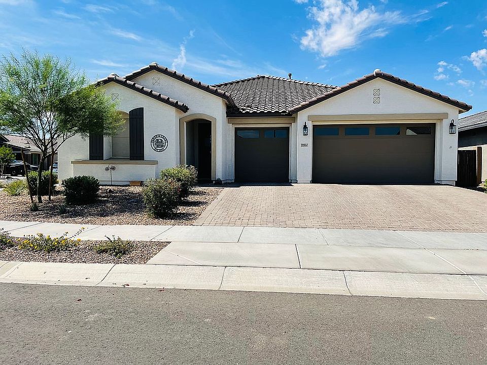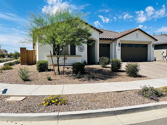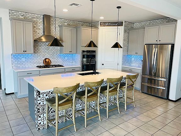 This beautiful 4 bed 2.5 bath home is one year old and sits in the highly sought-after Spur Cross neighborhood. Tile flooring throughout with carpeted bedrooms. The executive gourmet kitchen has a one-of-a-kind custom feel with an elegant stone backsplash, custom tiled island, Spanish Quartz countertops, under cabinet lighting, stainless steel appliances, and a walk in pantry. The open layout in the living room is accentuated with 2 full length glass sliding walls that can entertain parties of all sizes. The Master Bedroom is unrivaled in size to accentuate the retreat style feel of the home. The Master bathroom has a large elegant soaking tub with a floor-to-ceiling tiled shower. Custom built-in cabinetry adorns the den/flex room, as well as the fourth bedroom. Both full bathrooms have executive height vanities with matching Spanish Quartz. This floorplan is spread-out with 3 separate AC zones to ensure your utility costs are low, and rooms are cooled/heated only when needed. Solar screens cover every window to provide privacy and an elegant look. The backyard features a custom deck with a built-in gas fireplace, flanked by a large turf area and privacy trees. Three car garage with an epoxy/paint flake coated floor adds to the upgraded feeling of the home. The home elementary school is Katherine Mecham Barney (KMBE) and is very highly rated.