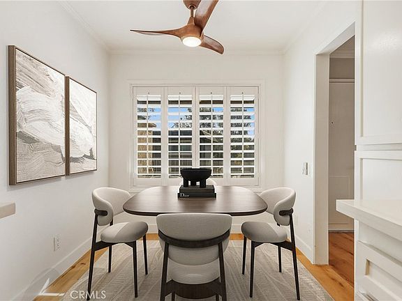 The home features dual-pane windows, central HVAC, new flooring, updated countertops in the kitchen and primary bath, and elegant crown molding. The kitchen is equipped with new dishwasher, microwave, and stove. Convenient in-unit washer and dryer hookups add to the home’s appeal.