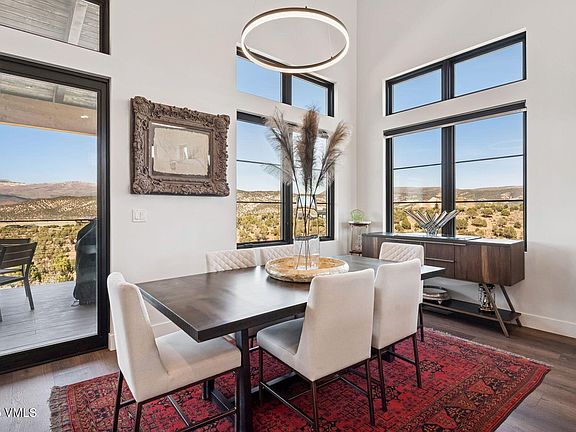 Discover your ''just right'' mountain modern retreat, ideally situated in the Highlands area of Eagle Ranch, offering sweeping vistas of Castle Peak. This newer, thoughtfully designed home blends comfort, style, & functionality, making it an exceptional choice for a primary or 2nd home. Eagle Ranch boasts walking/biking paths, miles of world-class mountain biking trails, an Arnold Palmer designed golf course, and easy access to downtown restaurants & shops. Inside, the spacious primary suite is a true sanctuary, featuring majestic views, direct access to a covered walk-out deck, a spa-like bath with a jetted tub, a large custom shower, and a walk-in closet with direct access to the laundry room. The home is equipped with a 4-zone HVAC system for personalized comfort on every level. The gourmet kitchen is appointed with an induction cooktop, quartz countertops, a stylish tile backsplash, two sinks, and a butler's pantry—perfect for entertaining. Luxury vinyl flooring throughout the main level offers both elegance and durability, while oversized triple-pane Pella windows w/electric shades frame the stunning mountain views. Enjoy indoor-outdoor private living with a covered back deck accessible from both the living area and primary suite. A step-down from the deck leads to the backyard and hot tub, ideal for relaxation after a day of adventure. The great room's floor-to-ceiling fireplace creates a warm, inviting ambiance, complemented by a striking staircase. Upstairs, are 2 additional bedrooms, a spacious shared bath, and an open study/loft area. The finished basement provides a flexible bonus/media room as well as a private guest suite, complete with walk-out access to the hot tub patio. The oversized heated 3-car garage is a standout feature, with a utility sink, double garage door (approx. 8'5''h x 18'w), and a third bay door (approx 9' 8''h x 8'10''w) perfect for storing a Sprinter van or all your adventure gear. Luxurious, functional mountain living at its finest