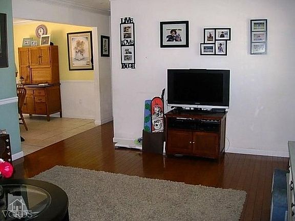 Great one story home with paved RV parking. A flagstone walk-way and beautiful leaded glass front door add to the welcoming curb appeal. Many upgrades throughout. Beautiful hardwood floors and plantation shutters highlight the living room. Recessed lighting on dimmer switches provide the perfect atmosphere in the living room and kitchen. The nicely remodeled kitchen showcases lots of cabinetry, pendant lights over the sink, and tile flooring. French doors in the dining area open onto the large sunny patio and huge back yard. Wainscoting is featured in the dining area. Other features of this home are crown molding, plus ceiling fans and mirrored closet doors in all of the bedrooms.