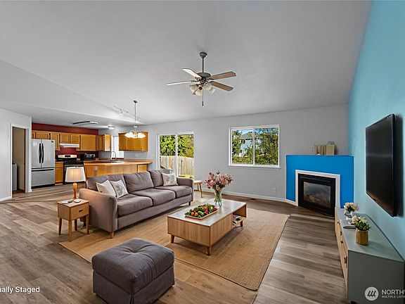 Welcome home to this beautifully maintained single-level gem in the sought-after East Park neighborhood. Enjoy an open floor plan with soaring cathedral ceilings, a spacious kitchen with oak cabinets, stainless steel appliances, and a walk-in pantry. The primary suite offers a walk-in closet and updated bath with a new walk-in tub. Relax by the cozy gas fireplace or step outside to your fully fenced yard with lush landscaping, fruit trees, and a patio for entertaining. Conveniently located near Fort Nugent Park, shopping, and NAS Whidbey.