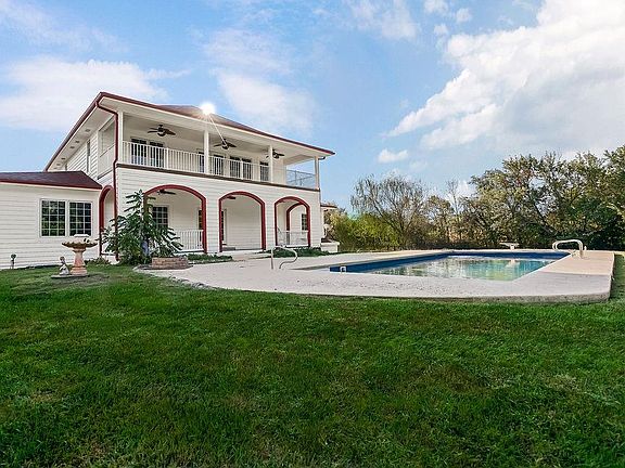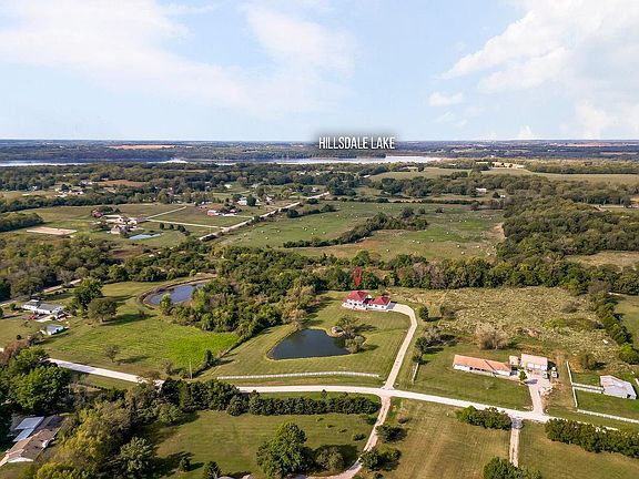 Refined country living with a touch of Americana charm! This custom-built two-story home sits in the heart of 5.48-acres and framed by a classic updated red roof, multiple decks w/white railings, and bold shutters! The open floorplan spans with hardwood floors throughout and designed for both comfort and entertainment, always just steps away from the action. Gourmet kitchen—with custom cabinetry, granite and appliances—serves as the hub for entertainment. Three main-level bedrooms offer flexibility, including one with French doors that’s perfect for a home office or guest room with exterior access. The massive master suite is an absolute dream! Access the newly decked balcony through a multitude of French-doors from either your bedroom or the master bath! Soak your stress away in the oversized tub sitting next to the see-through fireplace or rinse off in the walk-in shower overlooking the front pond! The basement features elevated ceilings, a built-in storm shelter, walk up access and plenty of room to expand for your personal gym, workshop, or additional living space. The garage is super versatile with a walkout; four insulated bays built extra deep for your vehicles and space for everything you need to manicure the property. The refreshed in-ground pool, complete with a new auto cover, updated deck & depths up to 8', is ready for making family memories. The private pond, stocked with a variety of fish species, begs for family fishing competitions! This property sits on a quiet, privately maintained road and offers the lifestyle you've been searching for—peaceful & practical with just the right distance from town, schools, and major highways. Bring the horses, grow your gardens or erect an outbuilding for even more options. Hillsdale Lake is a couple minutes away where there's open access to miles of lakeside equestrian trails, public land, stellar fishing & watersport opportunities. You really don't want this one to get away!