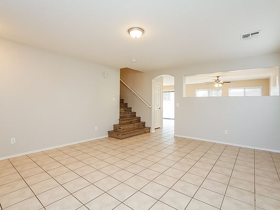If you need lots of space, this five-bedroom, two-and-one-half-bathroom rental home in Buckeye could solve your problems. Your tour of this 2,035-square-foot, two-story home begins in the classic living room with its tile floor and vintage arching doorway, which takes you to the open family room, dining, and kitchen area. This space is lit with a ceiling fan, chandelier, and can lights. A sliding glass door allows for natural light, and it leads to a covered patio. Stainless steel appliances, light countertops, and dark cabinets make the kitchen visually appealing and cook-friendly. An oversized laundry room and a convenient half bathroom sit just off the kitchen. There is no shortage of storage upstairs. All of the five bedrooms have roomy walk-in closets. The primary suite enjoys a cooling ceiling fan and tub/shower combo unit in its private bathroom. Call today to schedule an appointment!