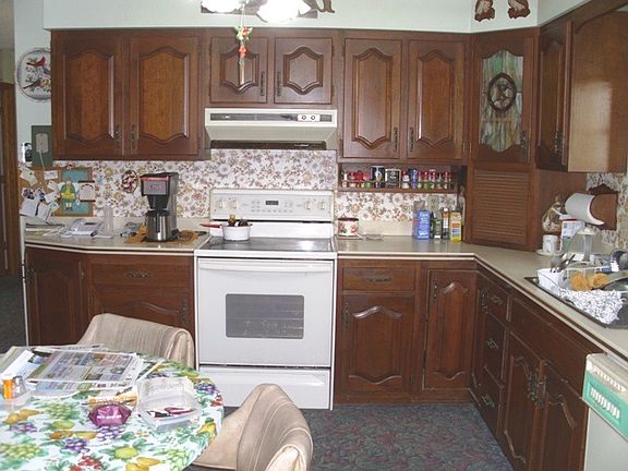 Ranch style home on almost (3) acres w/new roof 2012. Cherry kitchen cabinets, dbl sided pantry closet. Triple pane windows. Jacuzzi tub in mstr bath, large walk-in closet. Cedar lined closets. Stools attached to wall - not floor. Corian counter tops. Laundry closet in 4th bdrm. 24x36 insulated & drywalled garage. Basement steps in garage. 32x50 log cabin bldg w/knotty pine ceiling & walls, tongue & groove floor w/woodstove & 220 Amp. 7" solid logs. 24x30 outbuilding w/electric. Bldg for chickens or storage