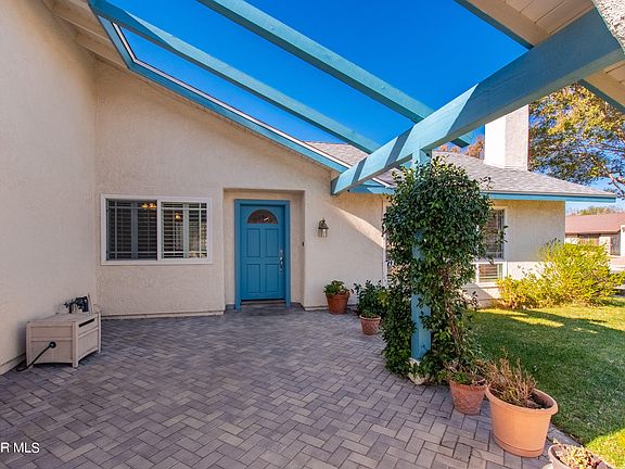 What a treat this home is and just in time for the Holiday Season! Located on the Eastside of Simi Valley, this corner-lot, New Monterey has been cared for and beautifully remodeled throughout. The front entryway had pavers installed all while removing any steps leading up to the house. Originally when built, these models had a formal entryway where you would step down into the living room or hall area. The stepdown has been removed to make the home one flat level. It is great for those who have health or safety concerns, or for those who just do not like steps. Once inside, be captivated by the seamless blend of elegance and functionality. The entire home added wood-looking tile floors throughout, adding a touch of warmth and sophistication to every room. Enjoy the abundance of natural light that fills the space, enhanced by vaulted ceilings and recessed lights strategically placed to create a welcoming ambiance throughout. Boasting modern stainless-steel appliances, granite countertops, stone-tile backsplash, and soft closing cabinets/drawers, the kitchen is great for the chef of the home! Both bathrooms were meticulously upgraded with subway tiles in the showers including accents of glass-tile in the primary, allowing you to enjoy the contemporary finishes and stylish touches that elevate your daily routine. Appreciate the tranquility and energy efficiency offered by double-pane windows and shutters, ensuring a peaceful and cost-effective living experience. Other top features include 1,826 square feet of living space, 4-bedrooms, whole-house fan, fireplace, and a walk-in closet in primary bedroom. Finally, step into the backyard and enjoy the shade and coverage under the oversized patio cover. Included with the home is an above ground spa and storage shed. Don't miss the opportunity to make this meticulously upgraded residence your new home sweet home!