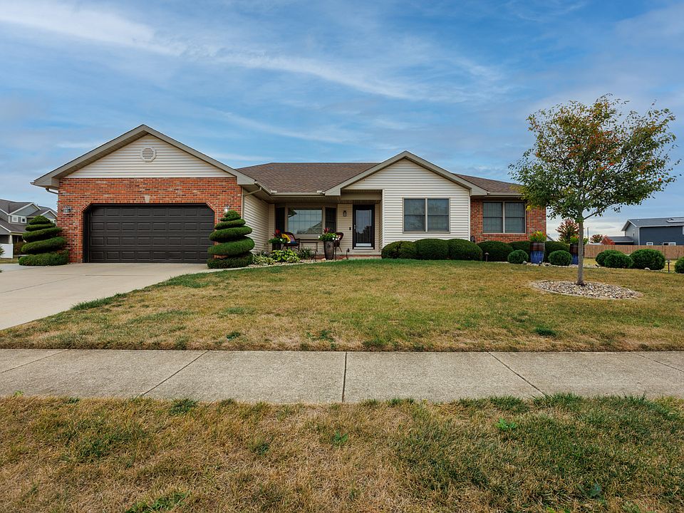 Welcome home to this beautiful ranch home on a corner lot. This home features four bedrooms, three and a half bathrooms with an open floor plan. The first floor features hardwood floors in foyer, hall and kitchen. Custom blinds on all windows on first floor and lower level. Lower level features a wet bar with stone columns, concrete top, theater area with surround sound. Outdoor features a nice fenced yard with 2 gates. Great landscaping all around the home to give it wonderful curb appeal! Updates include new roof June 2025, new fireplace surround and painted garage door. Must see property!
