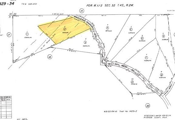 FIVE & ONE-HALF+- (5.52) VIEW ACRES in "THE RANCH at SKY MESA", a Private, Gated Community in SOUTHWESTERN RIVERSIDE COUNTY. LOT 2, TRACT 2. South (Main) & North gates equipped with high-tech, security, recording cameras. Buzz in guests. 500 acre community w/ 77 min. (5) acre+- lots. 2800 sq ft + homes w/ 3 + car garages. NO mobile homes. Propane & septic tank area. District water. Utilities in paved street. 218' FRONTAGE. 470' rear boundary. 630' N. & 670' S. Pad plotted on site map. Fire hydrant letter. Corners reconfirmed. Four horses allowed. Common area w/ horse arena. 2500'+- elevation. Natural habitat w/ rock/outcroppings. Private yet close to services & access to I-215, Hwy 74, realigned 79 & Ramon Expressway. - 1 of 13 REO lots. Package price. - builder/developer opportunity. Build or hold. OWNER MAY CARRY!