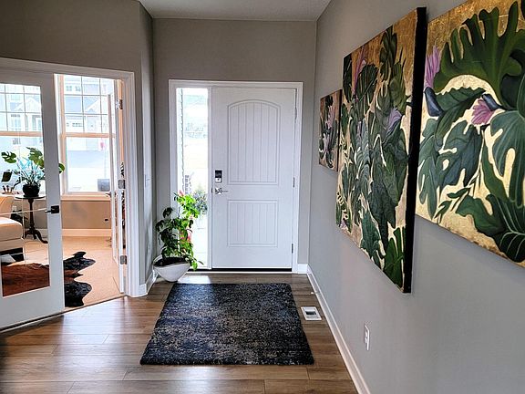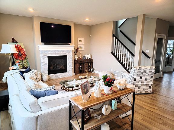 Gorgeous home with phenomenal private views of wetlands, pond and nature. Only available due to relocation, and only about 2 years old. Open and bright with distinctive features throughout, including a stunning gourmet kitchen with built in SS appliances, white and navy cabinets, under cabinet lighting, quartz countertops, tile backsplash and walk-in pantry. Main level also features a private home office/den, gas fireplace, mudroom and walkout access to a huge new maintenance free deck. Upper level has 4 bedrooms, (most with walk-in closets), a spacious loft and laundry room. Lower level includes a walkout to patio, a 5th bedroom with walk-in, huge family room, a 4th bathroom, and a large storage area. Many other upgrades throughout the home. Huge deck and gutters are not standard on new builds, and cost extra ($25K+).