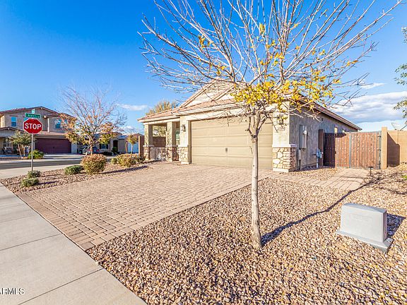 Experience the epitome of stylish living in this beautiful single-level home in the sought-after Adora Trails community of Gilbert. Revel in the stunning interiors. The gourmet kitchen, complete with stainless steel appliances, upgraded cabinetry, granite counters, breakfast bar and eat in kitchen is a chef's dream. Entertain with delight as the kitchen flows seamlessly into the great room. The den, with a walk-in closet, adds versatility and could easily be converted to a 4th bedroom. The spacious master bathroom feels like a spa retreat, featuring a rain head shower, dual-sink bathroom with ample storage. Embrace Arizona's outdoor lifestyle in the beautiful, low-maintenance yard. This N/S facing corner-lot home showcases high-end upgrades throughout, including upgraded baseboards.... ... lighting, fixtures, fans, and raised bathroom vanities. The backyard paradise with maintenance-free artificial turf is accessible through a triple slider door. Storage throughout with added cabinets in the laundry room, hallway closets, and exterior storage sheds. Adora Trails offers a vibrant community with over 12 miles of walking trails, clubhouse, fitness center, basketball court, parks, playgrounds, and top rated Patterson elementary school. Don't miss the opportunity to own in the prestigious Adora Trails neighborhood.