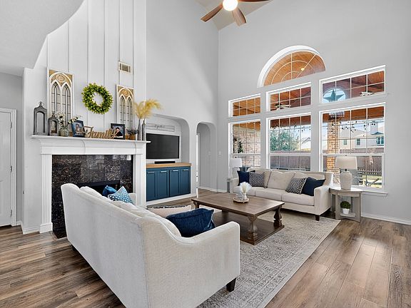 Stately fireplaceExtended patioLarge covered patioPicturesque oversized windowsStainless steel appliancesLuscious green grassGame room