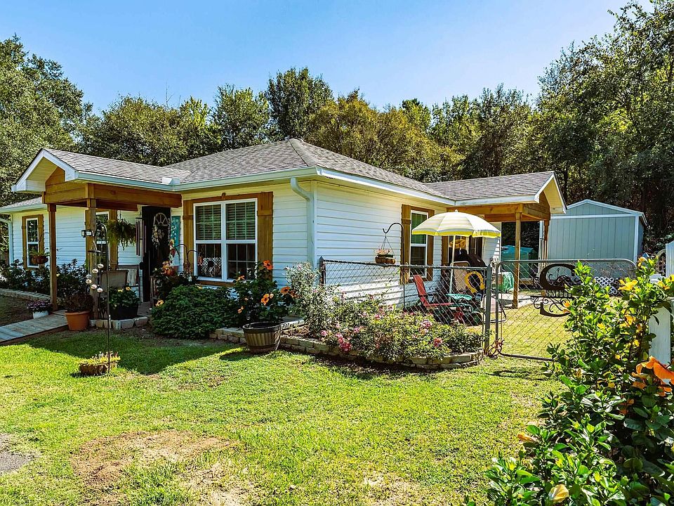 Oh-so-cute, like new, one story brick/siding home in the Berryville community, just outside Frankston, Tx. 3/2/2 car carport with 1344 SF and fenced yard. Beautiful landscaping around entire home. So many updates throughout! 3 year old composition roof. $10,000 in recent updates including gutters, carport, and 10x16 storage bld. Home was updated in 2020 with both baths updated with tile showers and floors, new toilets, soft close drawers, and mirrored medicine cabinets. In Nov. 2021, exterior updates included cedar shutters, porch wrappings, support beams, and window planters. Interior updates included kitchen with new stainless steel appliances and granite countertops, new energy efficient windows, flooring, lighting, and paint throughout. Nice sized master with plenty of room for a kingsize bed. Close to Lake Palestine. Call today before this cozy gem is gone, gone, gone!