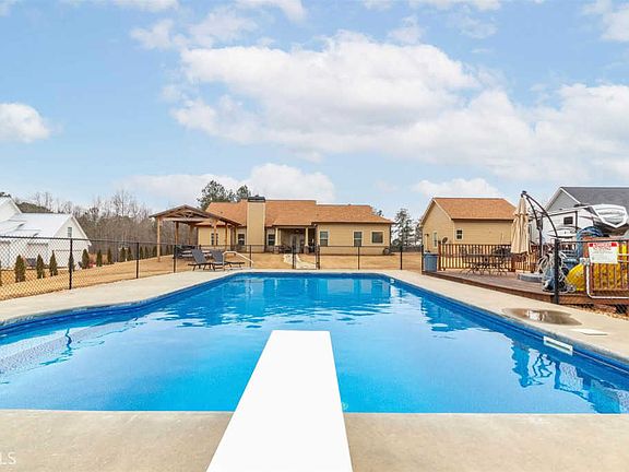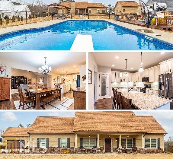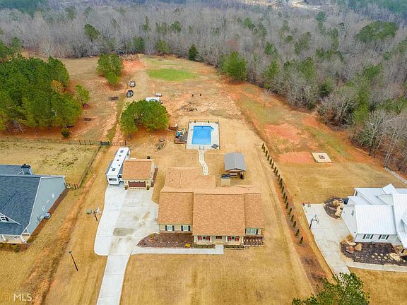 Beautiful & Updated Custom 4 Bedroom 3.5 Bath Ranch Home on 3.5+ Acres Located in Sought After Sharon Elem & Loganville High Schools. Ground level of detached garage has been finished to be your 4th bedroom or man cave, etc. It has a full bath, closet, & laundry. Outside features salt water inground pool, picnic pavilion, RV hook ups, long driveway. House has chef kitchen with large eat at island, farmhouse sink, granite, walk-in pantry, & stainless appliances. Open floor plan with kitchen, great room, & dining room combined. Great room features large fireplace & vaulted ceiling. Master suite has spacious walk-in closet & walk-in tile shower. House also has mudroom/laundry off oversized garage, and an office with double doors. Newer roof & gutters.