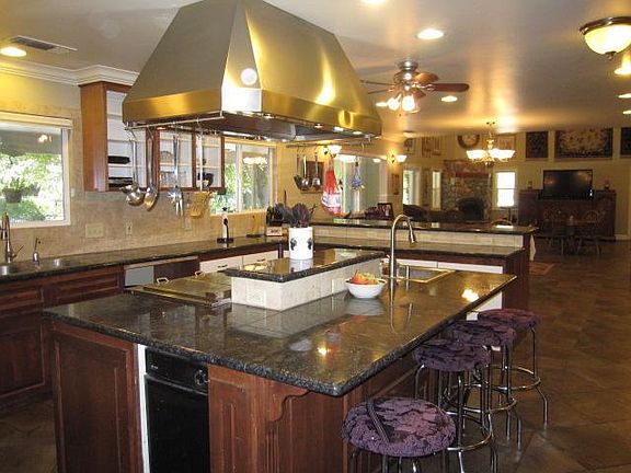 This huge gem, like the Hope Diamond, is hidden from view and off the main road for total privacy. Fully remodeled home with HUGE shop with office and bath, pool and fountain, soccer field (or whatever you choose), garden and fruit trees. An apartment is built into part of garage, but the shop is so large, plus it has an upstairs for storage, that you won't miss the parking. Large upstairs loft and plenty of shelving for the lover of books. Then there's the huge master suite and bathroom. Couldn't get it all in one photo! Visualize relaxing in the jetted tub, or reading by the fireplace on a cold evening, away from the noise! There are 2 water heaters so never worry about a cold shower or a dirty look. Now for the kitchen: a raised D/W, so no stooping over to load/unload. Large gas cooktop with grill and griddle, so bring on the syrup. Roll out drawers and walk in pantry. On the north side of the home is a handicap ramp, if needed for disabled or elderly requirements. Aw heck,