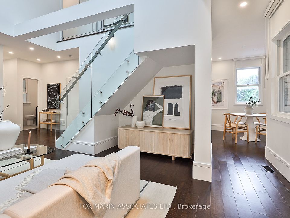 Not your carriage-era coach house. Tucked discreetly off a leafy laneway in the heart of Leslieville, this architecturally unassuming turn-of-the-millennium coach house originally constructed in 1999 reveals a striking yet humble private rear-lot residence. Behind its unassuming facade and dormered rooflines lies a mystery. A slice of the unexpected The exterior nods to its carriage house roots while concealing a bright, modernized interior. Step inside and discover a reimagined space where volume, light, and minimalism take centre stage. Crisp white walls and lofty ceilings offer a gallery-like backdrop for a curated aesthetic and an anything goes approach. Equal parts showpiece and workhorse, the kitchen wrapped in stone countertops and glossy custom cabinetry, accented by pendant lighting and polished steel finishes. A quiet Scandinavian style informs the open-concept living and dining, where its clean lines, glass enclosures, rich floors, large windows and cut-outs offer up something you don't see on the daily! Upstairs, the primary evokes a boutique hotel retreat with its serene palette, walk-through closet, and access to a secluded treetop balcony. In addition, you're bonus-ed with a studio-sized second bedroom, a huge four-piece bath with room to grow and a hallway overlooking the main floor, punctuated by four skylights and extra storage. And if that ain't enough, we've stacked your first level with a private office (or guest bedroom), extra outdoor space, a powder room, front hallway closet and separate laundry off the kitchen. Still not sold? How about the built-in garages perfect for your cars, your gear, your pottery, your art, your band..or even your in-laws. All the benefits of freehold living but without the maintenance (or those maintenance fees)! We cannot wait for you to take a whirl and to let us know what you think! Admittedly, we'll have a hard time parting ways with this laneway legend but, they say if you love something, set it free right?