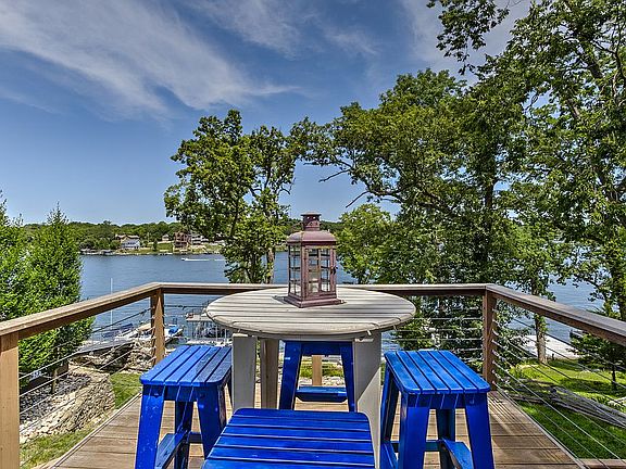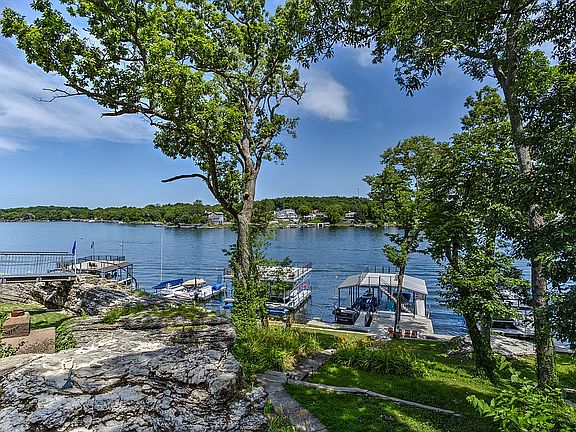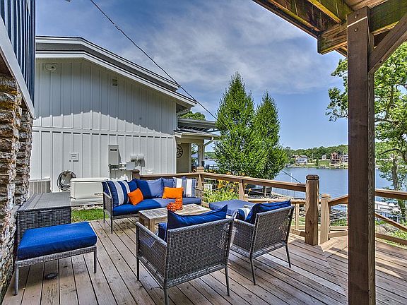 Beautiful updated first tier home on main channel. Stunning views of lake & dam. Gorgeous new double well dock. Concrete seawall w/seating for many!! Seadoo lift as well. Covered patio & additional entertaining areas.