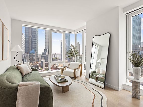 Marble fireplaceManhattan skyline vistasCorner unitWhite oak hardwood floorsCarrara-style quartz countertopsStainless steel appliancesClub lounge