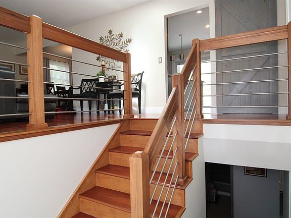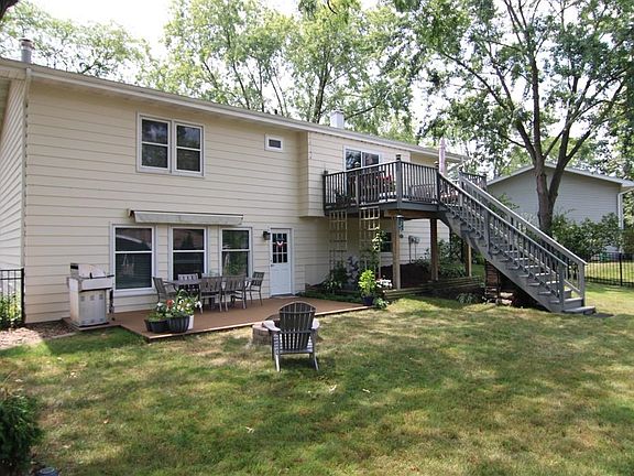 Prepare to be captivated the moment you step inside this beautifully updated four-bedroom home! From the elegant Brazilian Rose hardwood floors in the upper-level bedrooms, dining, and living rooms, to the stunningly remodeled kitchen featuring quartz countertops, stainless steel appliances, and chic laminate flooring. Every detail has been thoughtfully designed for modern living. The kitchen's sliding doors open to a raised deck, the perfect spot to savor your morning coffee or unwind with an evening cocktail while overlooking the tranquil surroundings. The lower level, with full egress, offers a versatile rec room with a cozy woodburning fireplace, an additional bedroom, and a gorgeous full bath. The combination laundry and exercise room adds convenience to your daily routine. Step outside from the rec room onto a spacious patio, ideal for hosting gatherings in the beautifully manicured yard. With close proximity to premier shopping and top-rated schools, this home truly has it all-comfort, style, and an unbeatable location. Don't miss the chance to make this exceptional property your own!