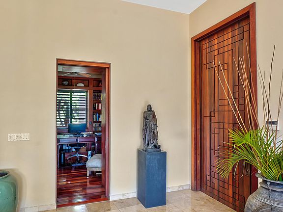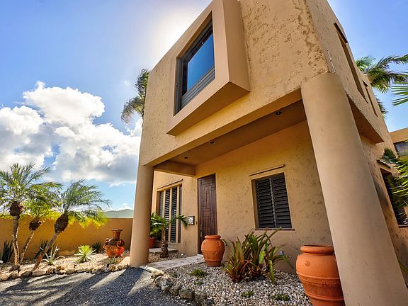 Packaged with an additional plot sits Casa Brandy -an iconic 3 bedroom/3.5 bath custom-designed home in Shoys-St. Croix's premier gated beachside enclave. Inspired by famed architect Ricardo Legoretta, this villa is an exceptional harmony of geometry, air & light. Open the caved mahogany door to a multi-level floor plan surrounding a lush courtyard. Rich materials evoke an easy luxury for your Caribbean lifestyle- polished marble, mahogany columns & floors. Enjoy the infinity-edged pool & Jacuzzi overlooking Christiansted harbor, Altona Lagoon, & the Caribbean Sea. Move to the patios covered by incredible mahogany pergolas to dine al fresco or simply relax. The chef's kitchen, poolside, features quarter sawn oak cabinetry, granite counters, Subzero & Viking stainless steel appliances. Accordion shutters recess into 12-inch thick poured concrete walls & protect picture windows w/stunning views from every room. Incredible sight lines from all patios ensure total privacy.