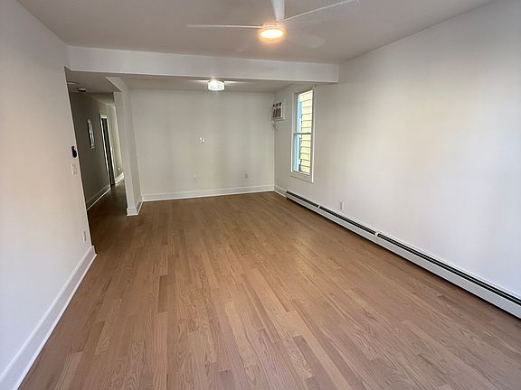 Do not miss out on this apartment. Be the first to live in this newly renovated 2 bedroom, 2 full bath with a bonus office/den on the 1st floor of a 3 family house. The property is steps from JFK Blvd East with spectacular views of NYC. The apartment has it all, hardwood floors throughout, large living room with beautiful bay window's. The kitchen is a chefs dream with all new stainless-steel appliances and lots of counter space and a large eat in dining area that overlooks the backyard. The main bedroom has lots of natural light with your own ensuite bathroom and a large walk in Closet. The apt comes with storage space in the basement and your own washer dryer in the kitchen.
