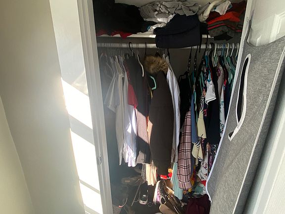 - Top floor living room, dining room, kitchen, two bedrooms with closets.