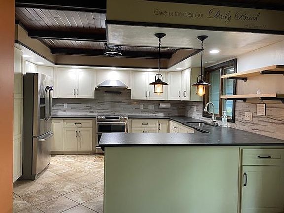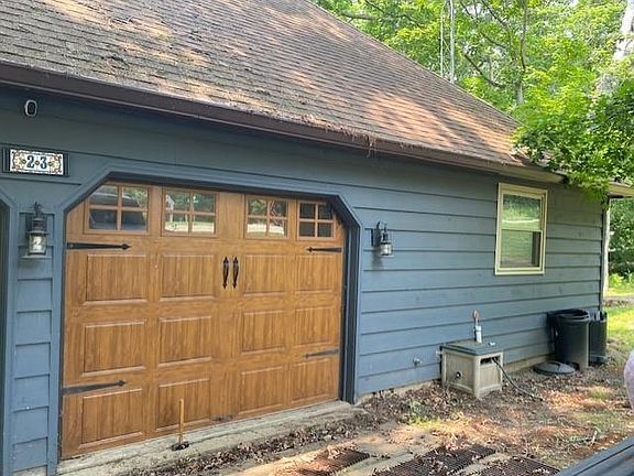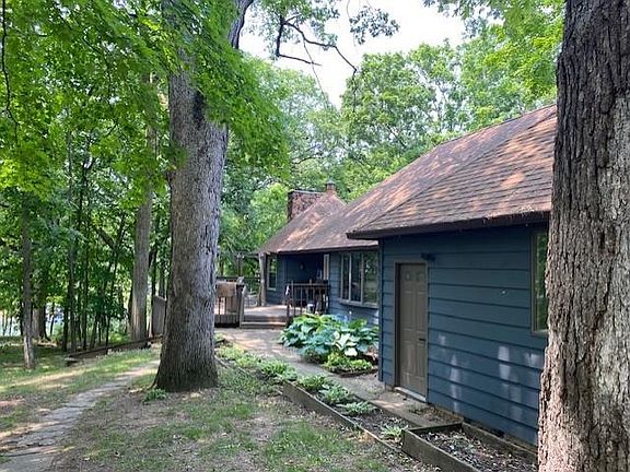 Affordable Lake home with 2 large wooded lots. This Cedar sided home features 4 spacious bedrooms, 2 updated baths, and a large deck that over looks the Lake. Nicely updated eat in kitchen, many replacement windows, updated lighting fixtures, whole house generator, spacious living room with vaulted ceiling & cozy fireplace. There are 3 storage sheds, a dock for your boating needs and 2 kayaks. The primary bedroom has a full bath, walk-in closet and sliding doors to the deck. There is an attached 2 car garage and a huge attic with sky lights that is great for storage. The full basement has areas that are partially finished with French doors leading to a concrete patio perfect for relaxing. Pool table, appliances, hot tub, sauna and deck furniture will stay. Enjoy fishing, boating and swimming at the pool or on the beach. So many more features to see!